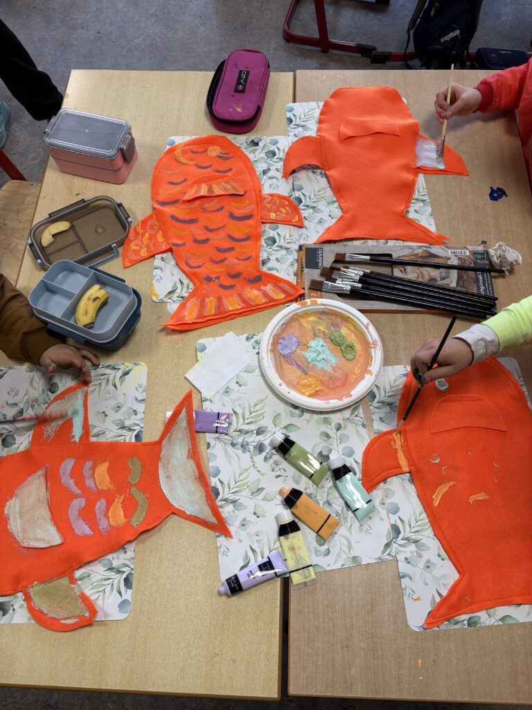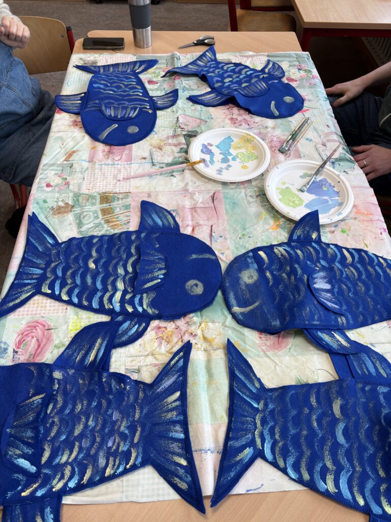 Am 30.01.2026 fand der Projekttag von LehrerInnen und SchülerInnen statt, die für den Rosenmontagsumzug die diesjährigen Kostüme bastelten. Thema dieses Jahr: Fische